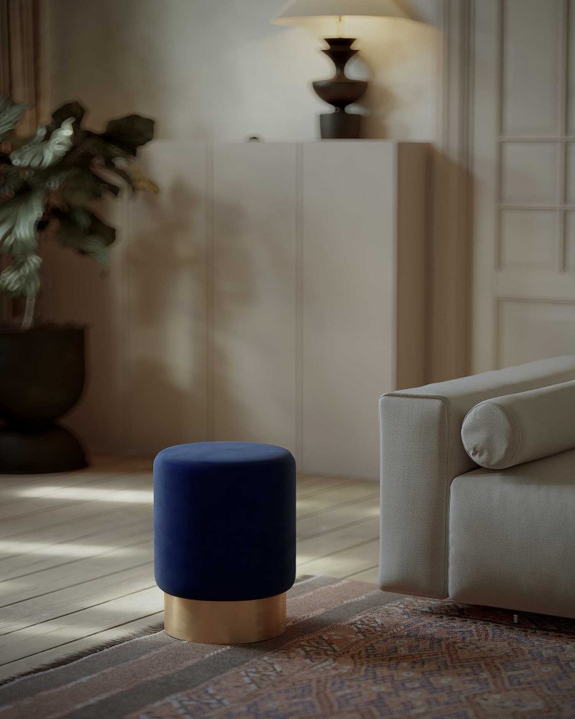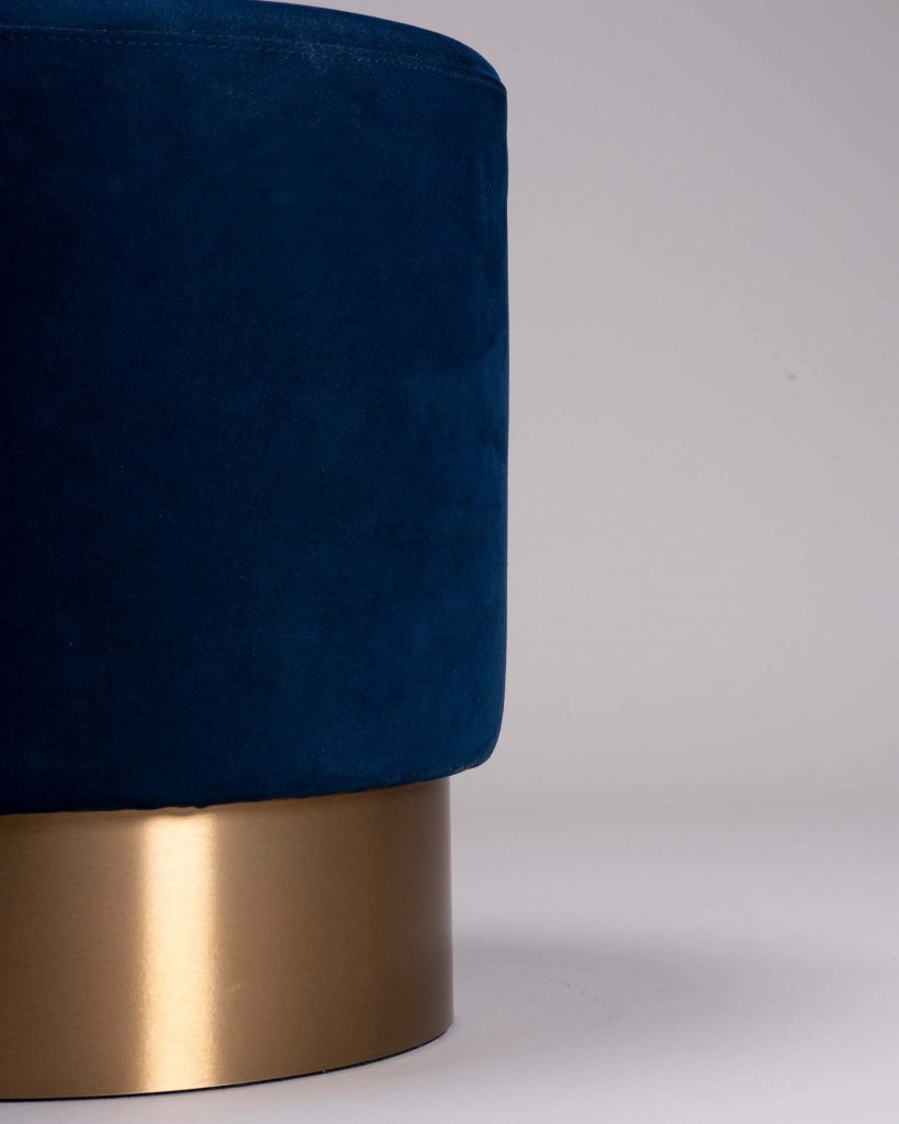 - Materiales Funda: Tela de microfibra de alta calidad, de fácil cuidado, duradera y suave como el ante. Acolchado del asiento: espuma de densidad 25 kg/m3 y espesor de 3,5 cm. Cuerpo del taburete: MDF y poliestireno. Base: acero inoxidable cepillado, recubierto de capas muy finas de veladura dorada.